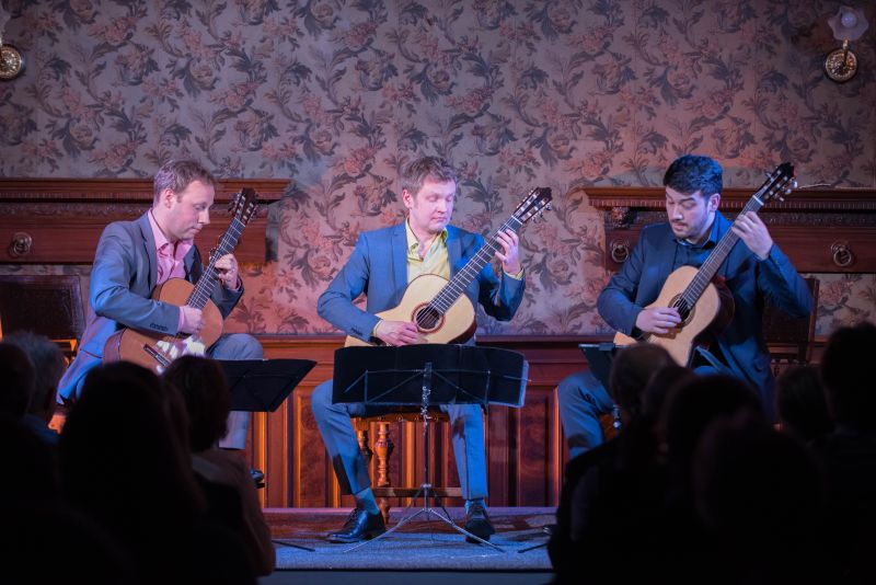 Alegrias - 17. März 2018Alegrias Guitar Trio – ein unvergesslicher Abend Am Samstag den 17. März begeisterte sich das Publikum im KUZ an der virtuosen Spielweise von drei Ausnahmekünstlern, die die hohe Kunst des Gitarrespiels fulminant beherrschen: Klaus Wladar, Takeo Sato und Dimitri Lavrentiev. ![]() Die drei haben das Konzertfach Gitarre studiert und sich beim Meisterklassenstudium an der Universität Augsburg kennengelernt. 2007 haben sie das Alegrias Guitar Trio gegründet. ![]() Für ihren Auftritt im KUZ sind sie 6 Stunden (!) mit dem Auto aus Augsburg angereist, haben einen tollen Konzertabend geboten, der nicht nur durch ihr unvergleichliches Spiel, sondern auch durch ihren humorvollen Umgang miteinander zu einem Erlebnis für die Zuhörer wurde. Nach dem hochkonzentrierten Gitarrespiel plauderten sie ungezwungen mit dem Publikum. „Man fühlt sich bei euch wie im Wohnzimmer mit Freunden und guter Musik“, meinte ein Besucher treffend. ![]() Aber auch die drei Musiker fühlten sich bei uns so wohl, dass sie noch lange, nachdem der letzte Besucher gegangen war, mit dem KulturKlub Team weitergefeiert haben. Und am nächsten Tag gings dann wieder 6 Stunden zurück nach Augsburg. ![]() Text: Ingeborg Zeh Fotos: Ingeborg Zeh und Werner Holy Bildergalerie Foto vergrößern - Mauszeiger auf Bild stellen und bei Bedarf mit Cursortasten (->) verschieben