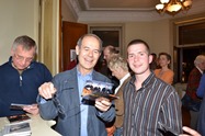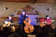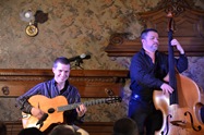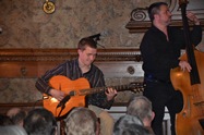 Diknu Schneeberger Trio - März 2013Ein Hauch von Weltmusik beim Konzert des Diknu Schneeberger Trios im Kupelwiesersaal Markt PiestingAnfang März bot der Kulturklub Markt Piesting ein ganz besonders musikalisches Gustostückerl an, das Konzert des in der Gypsy-Jazzszene äußerst bekannten Diknu Schneeberger Trios. Das Trio, bestehend aus dem Leader Diknu Schneeberger an der Gitarre, seinem Vater Joschi Schneeberger am Kontrabass und dem renommierten Gitarristen Martin Spitzer, der auch der Lehrmeister des jungen Spitzenmusikers war, brachte ein Programm, wie es sonst nur in den anerkannten Jazzkellern weltweit geboten wird. Bereits mit dem Eröffnungssong, geschrieben von Diknus Gypsy-Jazzidols Django Reinhardt wurde klar, was dieser Abend alles zu bieten haben wird, was des Besuchers Herz begehrt: Unbändige Spielfreude gepaart mit virtuoser Spieltechnik, ungebremster Musikalität und persönlicher Leichtigkeit des Seins. Selten hat ein 23-jähriger Musiker dermaßen perfekt im Kupelwiesersaal musiziert, aber alles der Reihe nach: Diknu Schneeberger war schon mit 16 Träger einer der wichtigsten Jazzauszeichnungen Österreichs, des Hans Koller Preises. Weitere Auszeichnungen und Auftritte in Clubs folgten, aber Diknu begeisterte auch in großen Häusern in Frankreich, Deutschland, der Schweiz, in Russland, Spanien und in Luxemburg sein immer zahlreicher werdendes Fanpublikum. Sein Debutalbum "Rubina" war geprägt von der Virtuosität des jungen Gitarristen und mit "The Spirit Of Django" konnte er Fans und Fachleute gleichermaßen begeistern. Und in der ungemein dichten Atmosphäre des Kupelwiesersaales, sozusagen auf Tuchfühlung mit seinem Publikum, wurde das Konzert des Diknu Schneeberger Trios zu einem Ereignis! Mit einer jazzigen Version des Beatles Songs „And I Love Her“, dem Standard „Sweet Georgia Brown“, den Django Reinhardt Kompositionen „Minor Blues“ und einem ungemein feinfühlig vorgetragenen Version des Welthits „Nouages“ breitete er einen bunten Fächer großartiger Musik vor den Besuchern aus, in dem die eingestreuten Eigenkompositionen kraftvoll bestanden. Neben Diknu Schneeberger brillierte dessen Vater Joschi mit einigen wunderbaren Bass-Soli und perfekter Wanderung durch die harmonische Landschaft der Musikstücke, die er gemeinsam mit dem Begleiter Martin Spitzer eindrucksvoll perfekt und mit Leichtigkeit auf die Bühne und in unsere Ohren zauberte. Standing Ovations und anhaltende Zugabe-Rufe begleiteten die Musiker am Ende des Abends in die Garderobe. Dass so großartige Musiker auch nach dem Konzert noch bei Getränken und Brötchen gerne mit den BesuchernInnen plauderten, zeigt auch deren Bodenständigkeit. Danke für diesen Ausblick in die Welt des Gypsy-Jazz! Rezension von Werner Holy Bildergalerie Foto vergrößern - Mauszeiger auf Bild stellen und bei Bedarf mit Cursortasten (->) verschieben