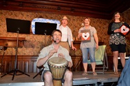 Honeymoon?!Ellen, Michi, Martin und Philipp begleiten eine Gruppe Flitterwöchler, oder solche die es irgendwann einmal waren, in deren Honeymoon! Doch nicht alle 4 sind von der Idee begeistert und so braucht es einige Überzeugungsarbeit und persönliche Geschichten Das Stepptanzduo Hot Feet ließ die Zeit von Gene Kelly und Fred Astaire wiederauferstehen. über das eigene Kennenlernen der Partner bis man zusammen im "Marriage Honeymoon Beach Resort" angekommen ist. Dort begleitet 4Joy die Teilnehmer bei allen klischeehaften Programmpunkten einer Honeymoonreise wie Honeymoonschnorcheln, Herztörtchenkaffee und Lagerfeuerromantik. Bis man zum Schluss zu der Erkenntnis gelangt "Schauen Sie immer auf die guten Seiten des Lebens" zurück... Und so nehmen die 4 Musiker alle "Honeymooner" und sich selbst ein wenig aufs Korn. 4 wunderbare Stimmen, musikalisch gekonnt gesetzte und ebenso meisterhaft umgesetzte Musikstücke, Freude am gemeinsamen Singen Michael Fischer bewies sein Multitalent auch als Jazzpianist. und komödiantisches Talent der Musiker machten diesen Acappella Abend zu einem wahren Genuss! Bildergalerie Foto vergrößern - Mauszeiger auf Bild stellen und bei Bedarf mit Cursortasten (->) verschieben