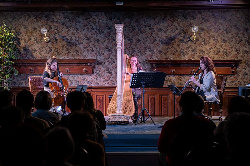 Drei talentierte junge Damen bespielten Klarinette, Cello und Harfe und schufen eine intime, bezaubernde Atmosphäre.