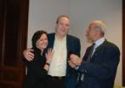 Triptychon"Triptychon" - Renate Slepicka, Joe Hofbauer und Robert Koizar jeder für sich ein Ausnahmekünstler - gemeinsam ein ganz besonderes Erlebnis. Sie brachten die Gassenhauer der Klassik, die jeder im Kopf hat, in neuem Gewand, eigens arrangiert für Trompete, Posaune und Klavier. Jedoch so komplett im Klang, dass man oft meinte, ein ganzes Orchester zu hören. ![]() Als Höhepunkt die West Side Story in Kurzfassung, verständlich für jeden mit einfühlsamen Texten und einem Querschnitt durch sämtliche Stücke. Die Carmen-Suite von George Bizet, triumphal intoniert mit Trompete und Posaune machte es den Zuhörern schwer sitzen zu bleiben. Die Rhapsody in Blue,temporeich und hingebungsvoll gespielt, zeigte dem Publikum die technische Perfektion der drei Künstler. ![]() Beim Karneval der Tiere durften die Künstler schließlich auch ihr komödiantische Talent zum Vorschein bringen, indem sie den unterschiedlichen Tieren nicht nur ein musikalisches Gewand verpassten. Man merkte, sie hatten großen Spaß dabei.